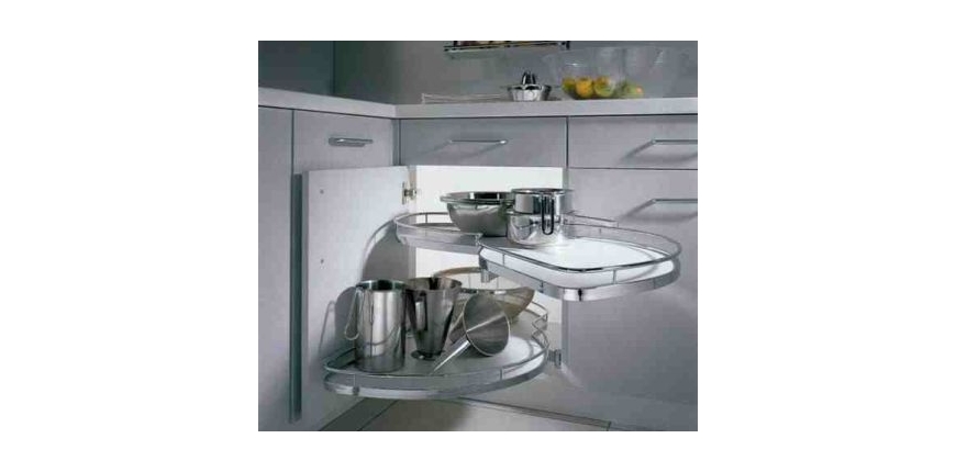 Dla tego na rynku dostępne są gotowe elementy wyposażenia szafki narożnej oraz jej gotowe modele z zamontowanymi mechanizmami, umożliwiającymi korzystanie z tak trudno dostępnych miejsc.